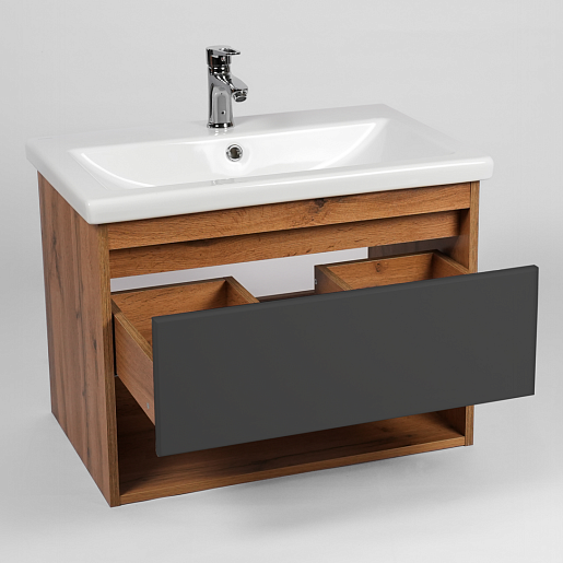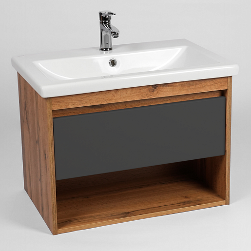 Тумба под раковину Бостон 60 1 ящик подвесная графит/дуб вотан