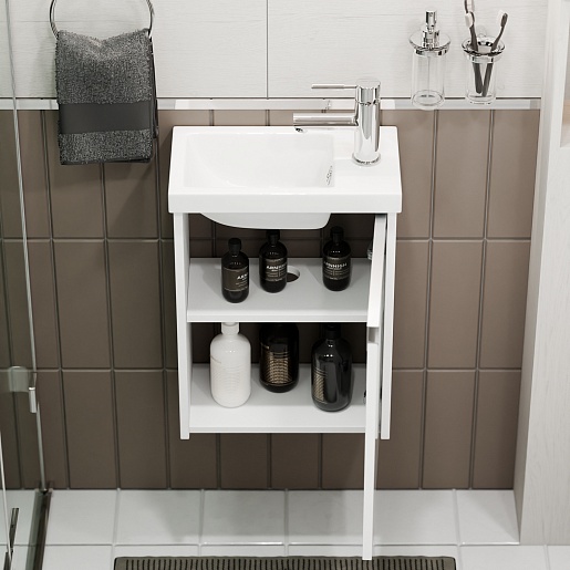 Тумба под раковину Бридж 40 R с ручкой Рейлинг подвесная белая