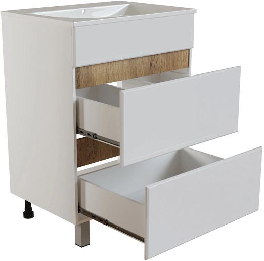 Mixline Тумба с раковиной Брикс 50 2 ящика белая/дуб вотан