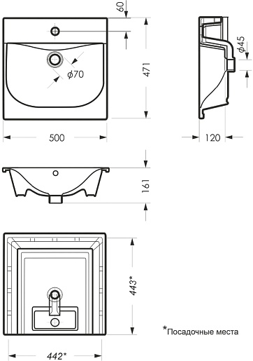 - Керамическая раковина со слив-переливом.