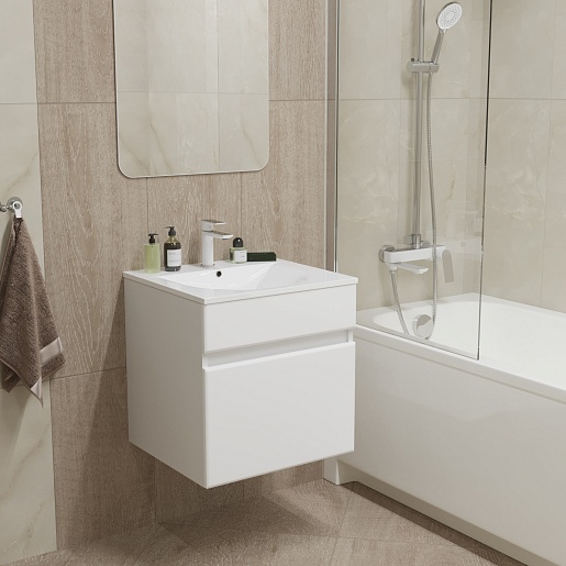 Mixline Тумба с раковиной Брикс 50 подвесная белая
