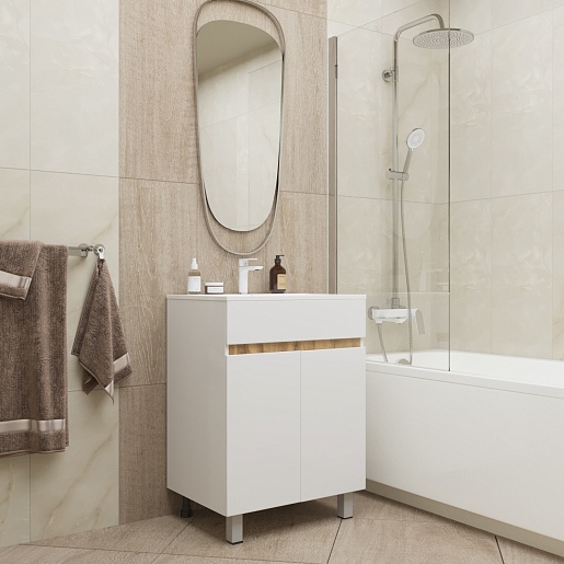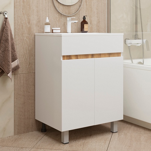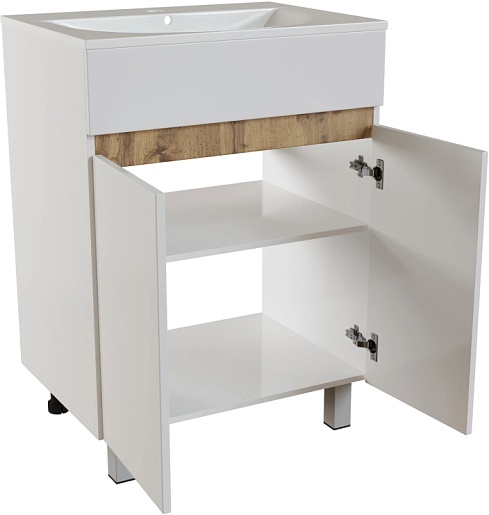 Mixline Тумба с раковиной Брикс 60 2 створки белая/дуб вотан