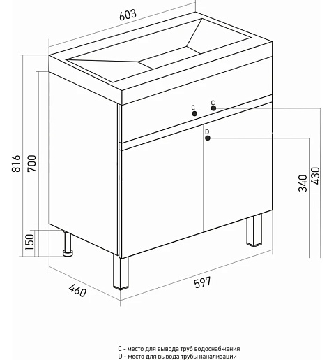Тумба под раковину Брикс 60 2 створки белый/дуб вотан (РАЗБОР)
