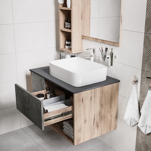 Подвесная тумба с раковиной Grossman Бруно 80 бетон/веллингтон - арт. 108008 / GR-3016.
