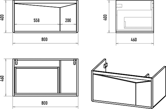 - 1 выдвижной ящик с направляющими скрытого монтажа.