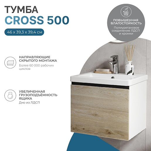 Тумба под раковину Cross 500-0-1 подвесная дуб давос натуральный