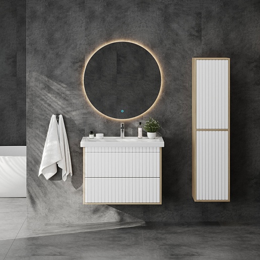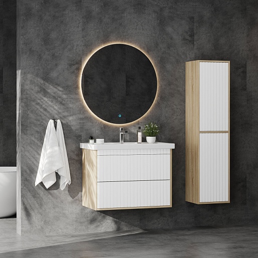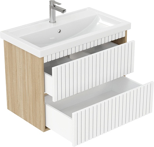 Тумба под раковину Дайлер 80 подвесная белая/дуб сонома