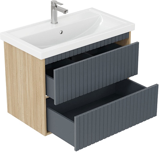 Onika Тумба с раковиной Дайлер 80 подвесная графит/дуб сонома
