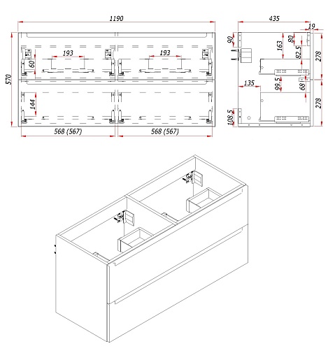 Мебельная раковина Oliveeka 121 NS2001-120 глянцевая белая