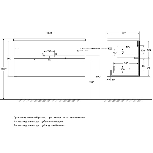 Габариты корпуса тумбы (ШхВхД): 1000х500х457 мм.