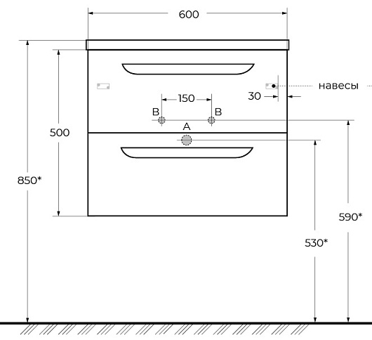 Тумба под раковину Eco Cer-N 60 bianco lucido, без ручек
