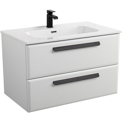 Cezares Тумба с раковиной Eco Cer-N 80 bianco lucido CZR-8095-80 ручки чёрные