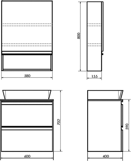 Подвесная тумба с раковиной Comforty Эдинбург 60 2 - арт. 00-00005700CF.