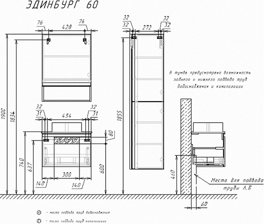 В комплекте: тумба, столешница, раковина, крепеж.