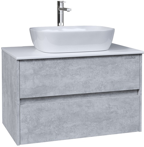 Grossman Тумба с раковиной Эдванс 80 GR-3020 подвесная цемент светлый
