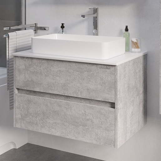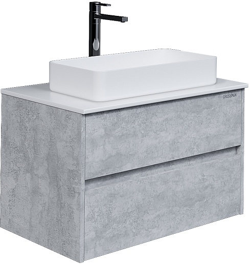 Grossman Тумба с раковиной Эдванс 80 GR-3031 подвесная цемент светлый