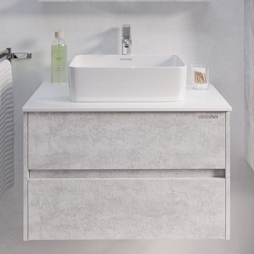 Grossman Тумба с раковиной Эдванс 80 подвесная цемент светлый