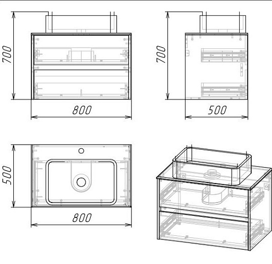 Подвесная тумба с раковиной Grossman Эдванс 80 - арт. 108010 / GR-3016.