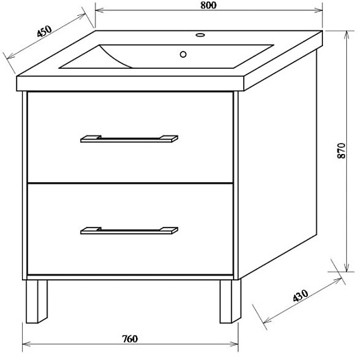 Тумба с раковиной Sanflor Экко 80 - арт. С23195 / S-UM-COM80/1-w.