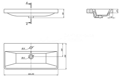 - Диаметр слива: 4,5 см.