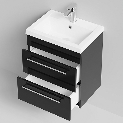 Водолей Тумба с раковиной Элис 50 подвесная 2 ящика черная