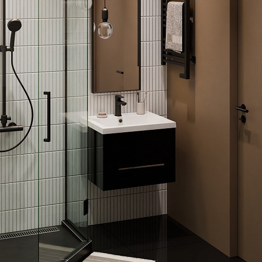 Тумба под раковину Элис 58 подвесная 1 ящик черная