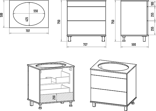Комплектация: тумба, раковина, ножка (4 шт.).
