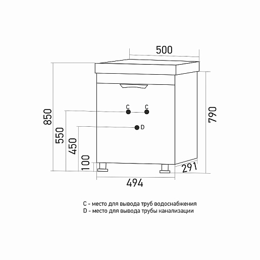 Тумба под раковину Этьен 50 белая правая