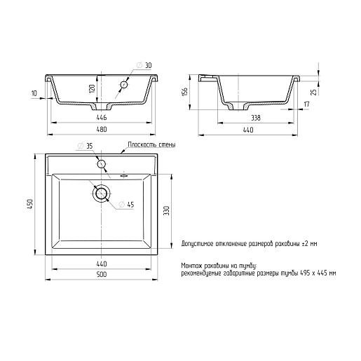 Раковина накладная Рим 50 белая