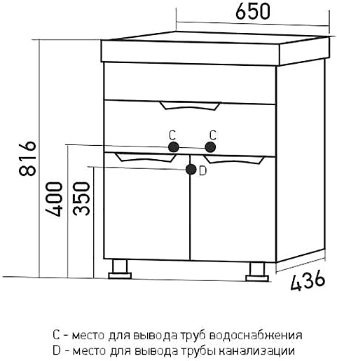 Комплектация: тумба, раковина, ножка (4 шт.).