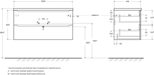 Подвесная тумба под раковину BelBagno Etna 100 белая матовая - арт. ETNA-1000-2C-SO-BO / BB1000ETL.