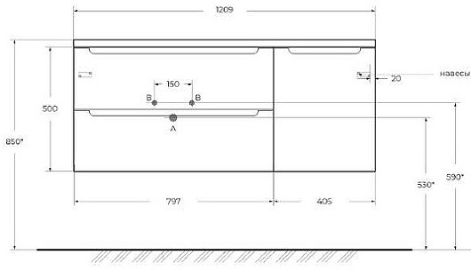 Мебельная раковина 121/46 BB1200ETL-L
