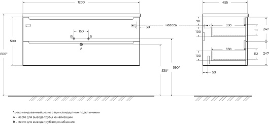 Подвесная тумба под раковину BelBagno Etna 120 бежевая матовая - арт. ETNA-1200-2C-SO-CO / BB1200ETL.