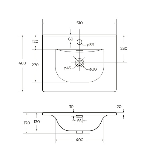Мебельная раковина 61/46 BB-8099-60