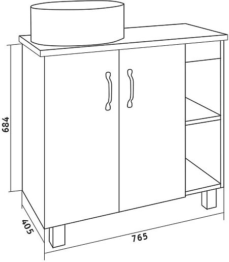 В комплекте: тумба, раковина, столешница, комплект креплений, ножка (4 шт.).