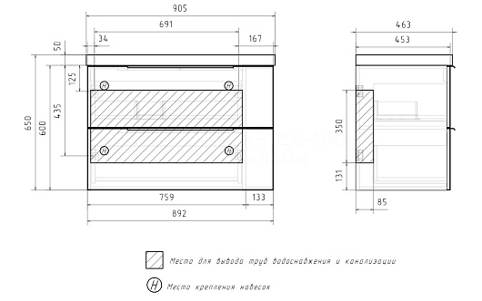 Тумба под раковину Forest 90 2 ящика подвесная орех/графит