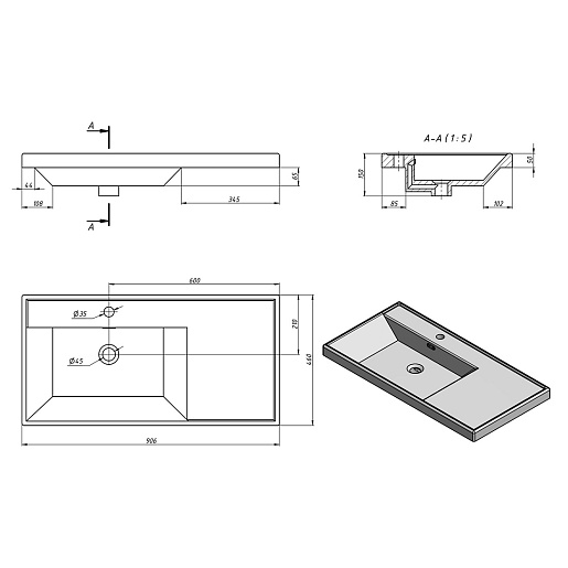 - Диаметр слива: 4,5 см.