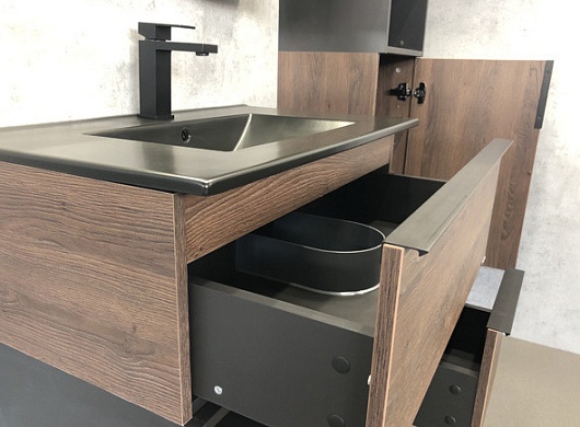 - Раковина со слив-переливом Comforty 75EMB черного матового цвета.