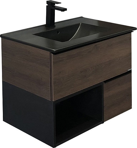 Comforty Тумба с раковиной Франкфурт 75 75EMB подвесная дуб шоколадно-коричневый/черная