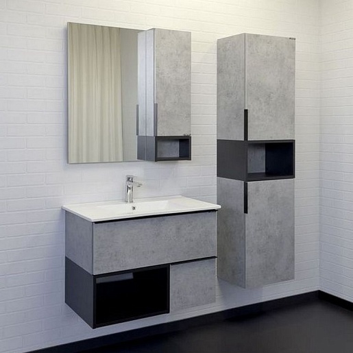 Comforty Тумба с раковиной Франкфурт 75 подвесная бетон светлый/черная