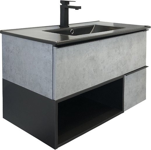 Comforty Тумба с раковиной Франкфурт 90 90EMB подвесная бетон светлый/черная