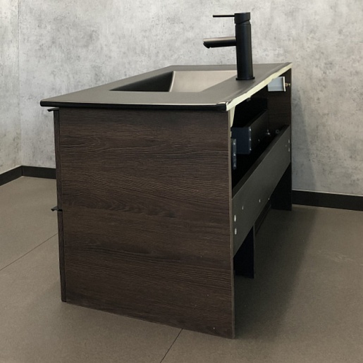 Comforty Тумба с раковиной Франкфурт 90 90EMB подвесная дуб шоколадно-коричневый/черная