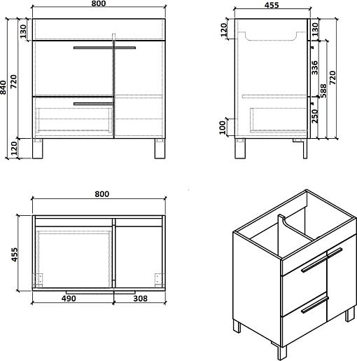 - 2 распашные дверцы, 1 выдвижной ящик.