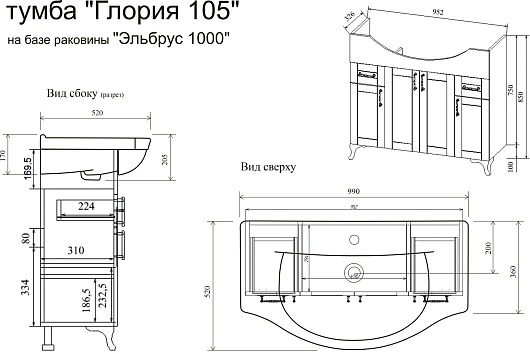 Тумба под раковину Sanflor Глория 105 - арт. С000005715 / 1.WH11.0.255.