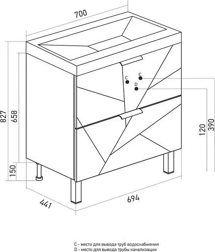 Комплектация: тумба, раковина, ножка (4 шт.).