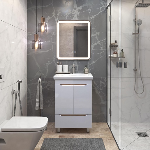 Тумба под раковину Grani 600-2-1 белая/дуб золотой