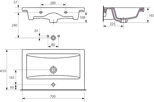 - Мебельная раковина Cersanit Комо (Como) 70 накладная, белая, прямоугольная, фарфор.