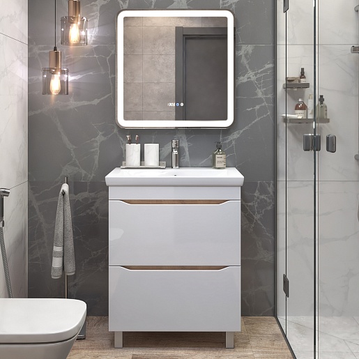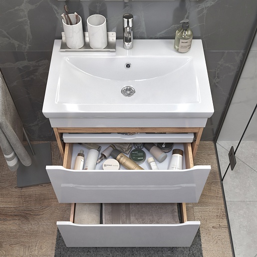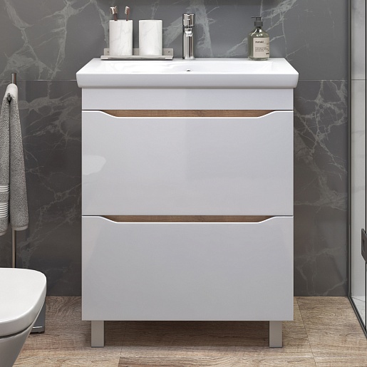 Тумба под раковину Grani 70 напольная белая/дуб золотой