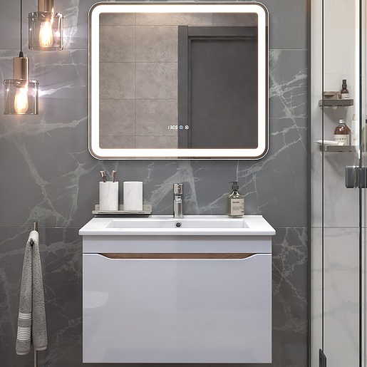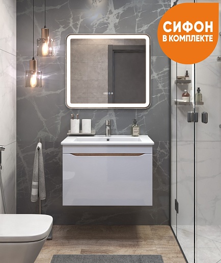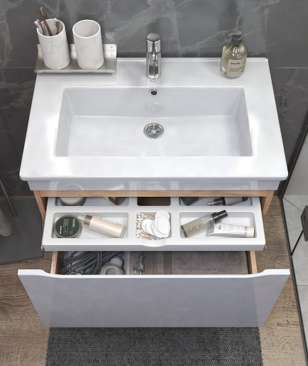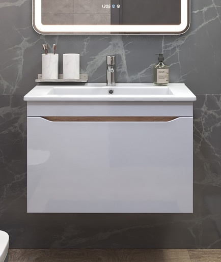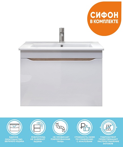 Тумба под раковину Grani 750-0-1 подвесная белая/дуб золотой