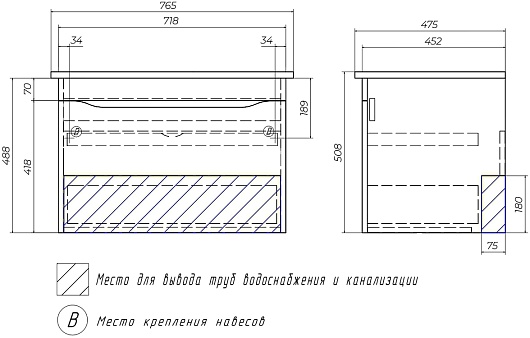 Мебельная раковина Kirovit Оскар 75